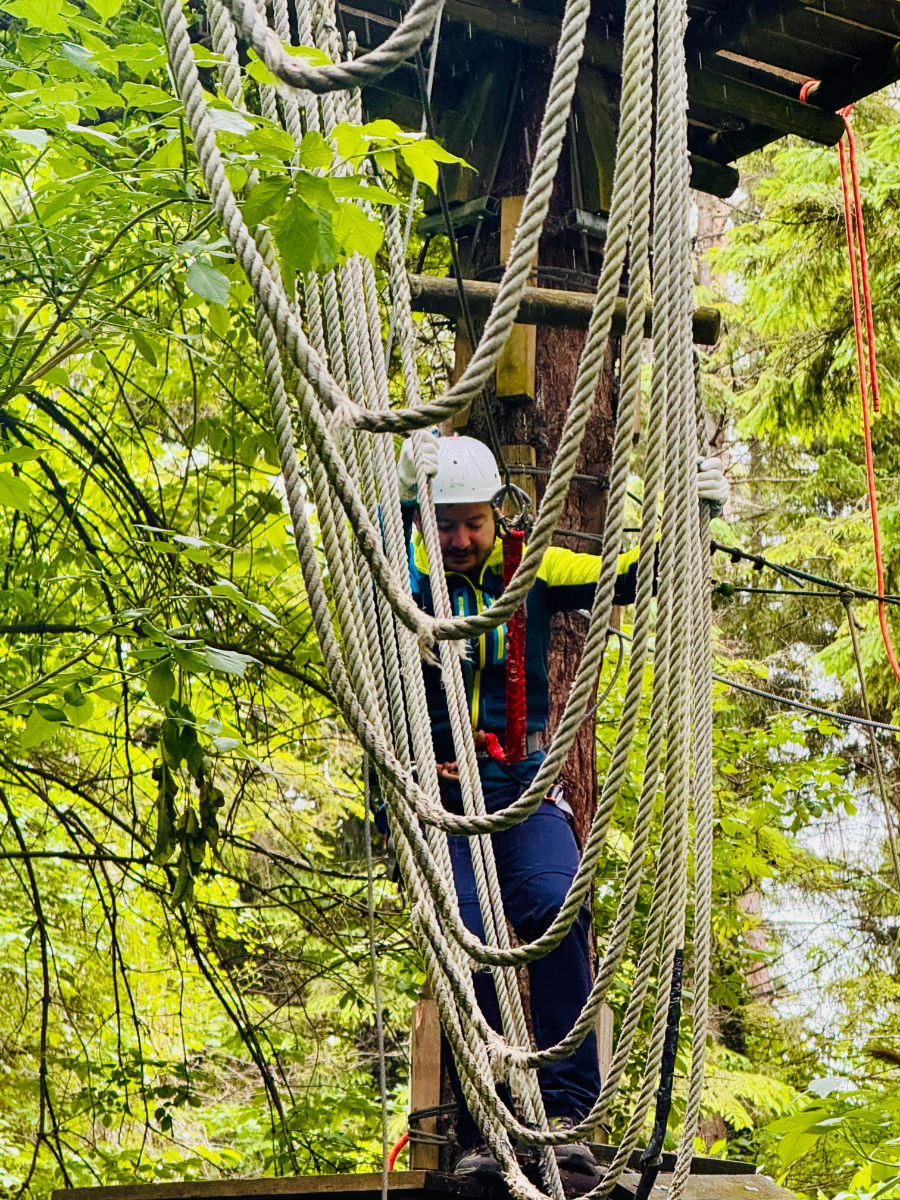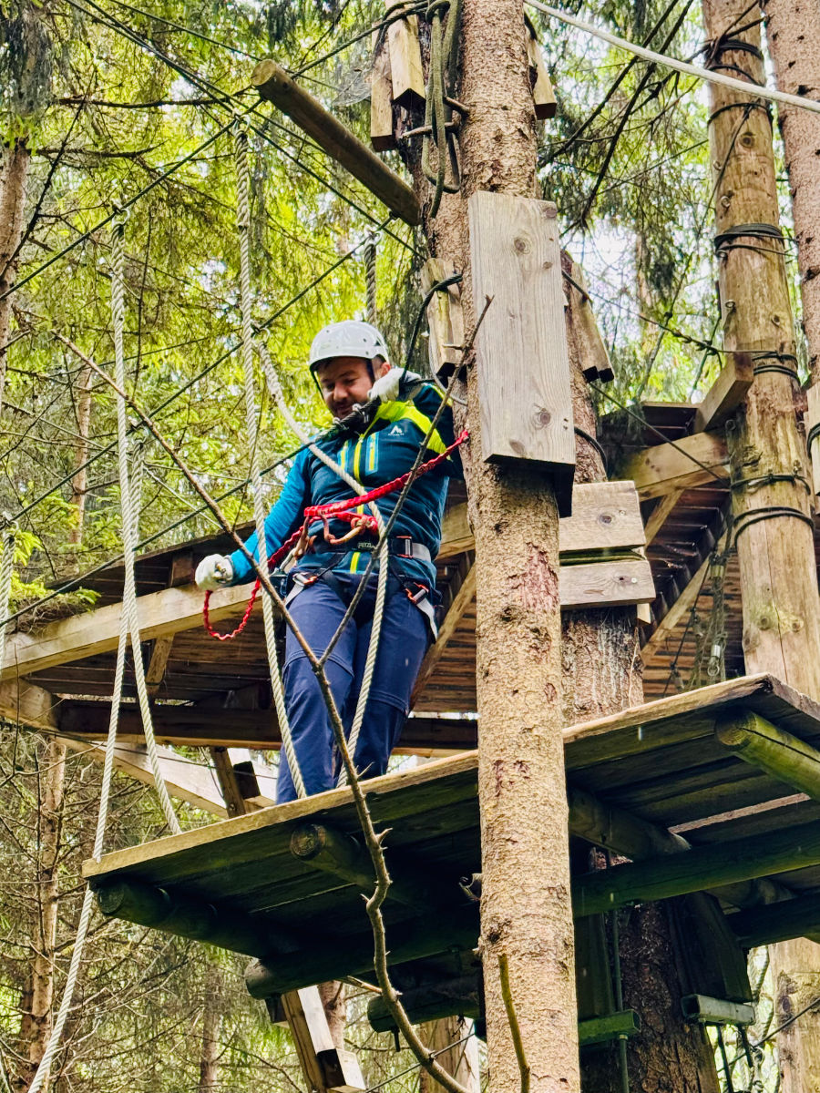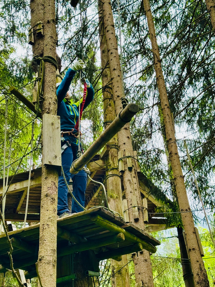 Bei zunächst strömendem Regen, aber bester Laune wurden die ersten Klettergurte angelegt und die Parcours erkundet. Mut, Geschicklichkeit und Teamgeist waren gefragt, als es über schwankende Brücken, rasante Seilrutschen und knifflige Hindernisse ging. Jeder konnte seine eigenen Grenzen austesten und dabei die Kolleginnen und Kollegen von einer ganz neuen Seite kennenlernen.