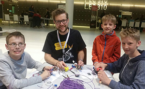 Our two master students, Jakob and Marie build little ion traps with two spoons and a metal wire with visitors at the ‘Lange Nacht der Forschung’.
