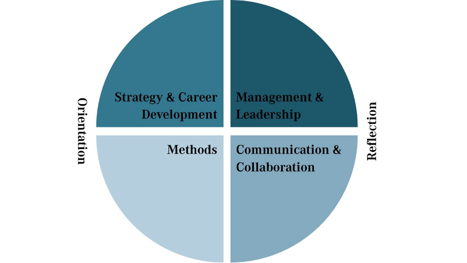 Communication & Collaboration: Ausbau von Kommunikations- und Gesprächsführungskompetenzen, verständliche Wissenschaftskommunikation, Konfliktlösung und Netzwerkaufbau.