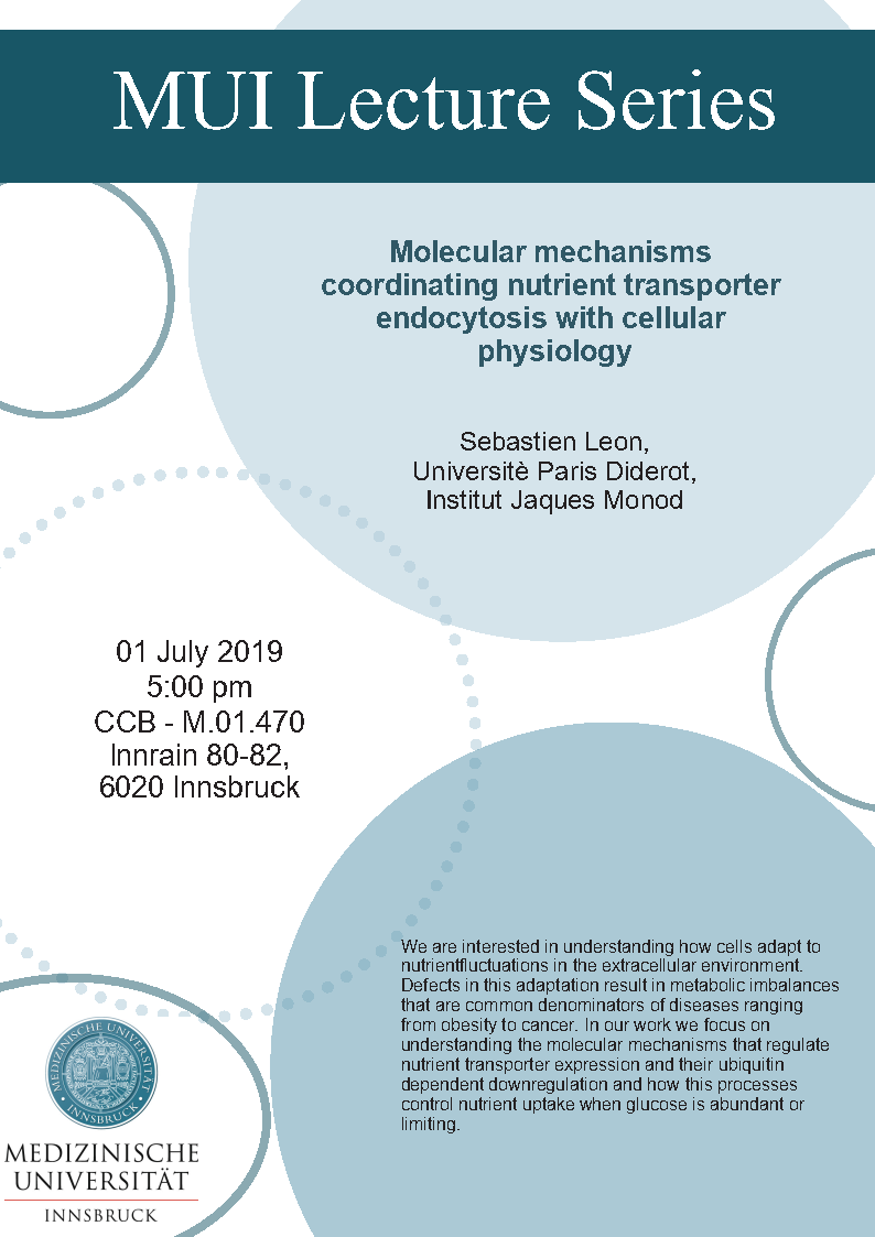 Molecular mechanisms coordinating nutrient transporter endocytosis with cellular physiology Prof. Sebastien Leon