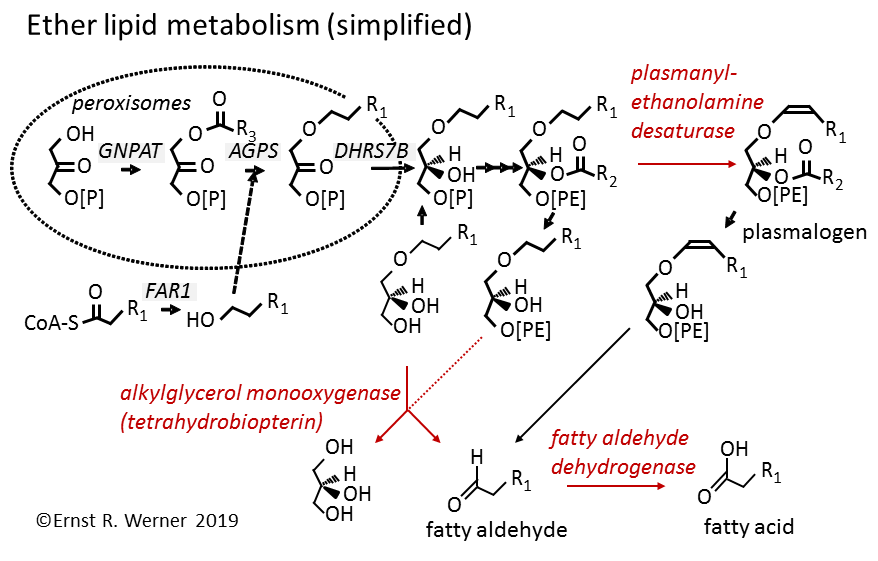>> Key reference 3: A novel assay for the introduction of the vinyl ether double bond into plasmalogens using pyrene-labeled substrates. Werner ER, Keller MA, Sailer S, Seppi D, Golderer G, Werner-Felmayer G, Zoeller RA, Watschinger K. J.Lipid Res. (2018) 59: 901-909