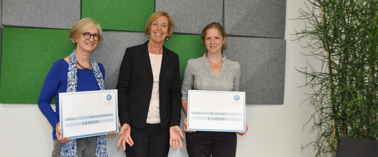 Maßnahmen zur Förderung von Frauen werden an der Medizinischen Universität Innsbruck seit Jahren forciert. Ein wichtiger Bereich ist auch die Förderung der wissenschaftlichen Leistungen von Frauen. 2013 wurde zu diesem Zweck von der damals noch als Vizerektorin für Personal, Personalentwicklung und Gleichbehandlung tätigen und nunmehrige Rektorin o. Univ.-Prof.in Dr.in Helga Fritsch erstmals zwei Preise ausgeschrieben, die explizit der Förderung von Wissenschaftsleistungen von Frauen dienen. Die Auszeichnung erfolgt in Form einer finanziellen Unterstützung für die weitere wissenschaftliche Arbeit. Der Preis für die höchste Drittmitteleinwerbung einer wissenschaftlichen Mitarbeiterin an der Medizinischen Universität Innsbruck ging 2014 an ao.Univ.-Prof.in Dr.in Gabriele Baier von der Sektion für Neurobiochemie (Direktorin: UNiv.-Prof.in Dr.in Christine Bandtlow). Den Nachwuchspreis für die beste PhD-Thesis einer Wissenschafterin der Medizinischen Universität Innsbruck erhielt Ass.-Prof.in Dr.in Elke Griesmaier, PhD von der Univ.-Klinik für Pädiatrie II (Direktorin: Univ.-Prof.in Dr.in Ursula Kiechl-Kohlendorfer). Rektorin o.Univ.-Prof.in Fritsch überreichte den beiden Preisträger:innen einen symbolischen Scheck.