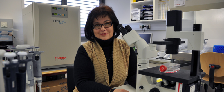 Für ihre maßgeblichen und international anerkannten Forschungsleistungen auf diesem Gebiet wurde die aus Sibirien stammende Strahlenexpertin nun mit dem renommierten K.-H. Kärcher Ring der Österreichischen Gesellschaft für Radioonkologie, Radiobiologie und Medizinische Radiophysik ausgezeichnet. Die österreichweit seit 1996 nur alle vier Jahre vergebene Ehrung wurde der Strahlenbiologin im Rahmen der 28. ÖGRO-Jahrestagung Ende November übergeben – eine Anerkennung, die der Innsbrucker Universitätsklinik für Strahlentherapie-Radioonkologie unter der Leitung von Univ.-Prof. DI Dr. Peter Lukas übrigens bereits zum zweiten Mal zuteil wurde.