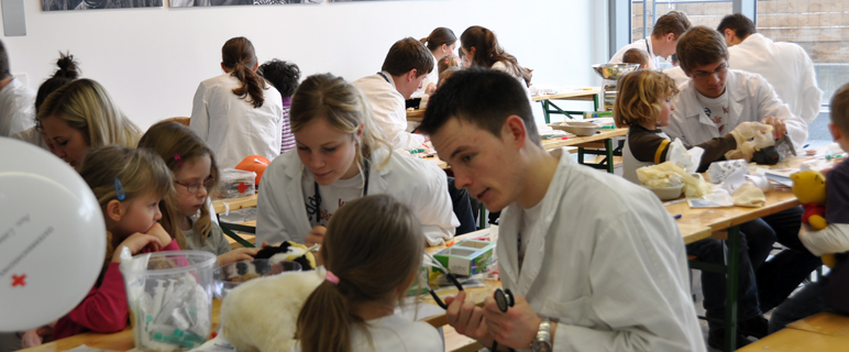 Wenn hunderte von Kindern im Alter von drei bis sieben Jahren mit ihren Plüschtieren im Arm Richtung Kinderklinik marschieren, dann kann nur das „Teddybärkrankenhaus“ im Spiel sein. Das von der AMSA (Austrian Medical Students Association), einem Verein von ehrenamtlich arbeitenden Studierenden der Medizinunis in Innsbruck, Salzburg, Graz und Wien zweimal jährlich organisierte Projekt, bietet Kindern die Möglichkeit, Krankenhausatmosphäre zu schnupper, ohne selbst als Patient betroffen zu sein.