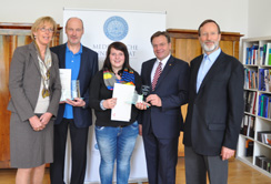 Der Tiroler Landeshauptmann Günther Platter hat vergangene Woche der Medizinischen Universität Innsbruck einen Besuch abgestattet: Im Rektorat wurde Verena Bettina Scharf zum Lehrling des Monats Februar 2012 ausgezeichnet. Eine Jury hatte die junge Stubaierin, die derzeit eine Lehre zur Tierpflegerin im 3. Lehrjahr an der Medizinischen Universität Innsbruck absolviert, auf Grund ihrer sehr guten Leistungen ausgewählt.