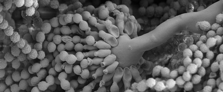 Titelfoto: Elektronenmikroskopische Aufnahme von Aspergillus fumigatus: Sporenträger (Foto von ao.Univ.-Prof. Dr.phil. Kristian Pfaller, Sektion für Histologie und Embryologie)