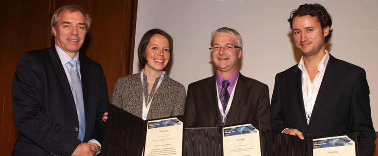 Im Rahmen der Jahrestagung des österreichischen Verbandes der Gefäßmedizin (ÖVG) im Graz wurden die drei besten wissenschaftlichen Präsentationen ausgezeichnet. Zwei der begehrten Preise gingen an die Innsbrucker Universitätsklinik für Gefäßmedizin (Leiter Univ.-Prof. Dr. Gustav Fraedrich): Oberarzt Dr. Josef Klocker erhielt den Preis für eine Studie zu den Langzeitergebnissen bei Aortendissektion und Oberärztin Dr.in Barbara Rantner für ihre Arbeit zu Stentbehandlungen der Carotis-Stenosen.