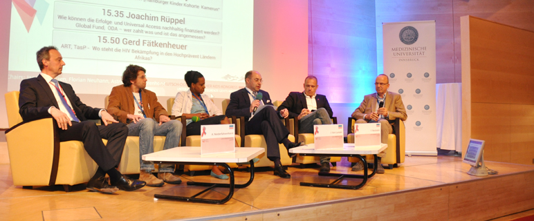 Im Vorfeld des größten deutschsprachigen Fachkongresses DÖAK 2013 zum Thema HIV und AIDS in Innsbruck diskutierten gestern internationale Expert:innen in einem Round Table Gespräch über die Notwendigkeit eines globalen Zugangs zur HIV-Therapie. Rund 1.000 Forscher:innen, Mediziner:innen, Sozialarbeiter:innen und Betroffene nehmen noch bis 15. Juni an den Symposien und Workshops des 6. Deutsch-Österreichischen Aidskongresses teil.