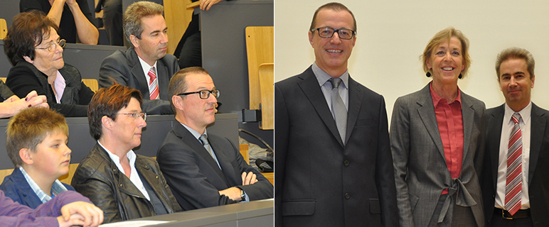 „Entzündliche Erkrankungen finden sich in allen Regionen des menschlichen Körpers und betreffen alle medizinischen Disziplinen“, erklärte der neue Direktor der Univ.-Klinik für Innere Medizin I, Univ.-Prof. Dr. Herbert Tilg, gleich zu Beginn seiner Antrittsvorlesung. In dieser Feststellung wie vor allem auch in seiner Tätigkeit als behandelnder Arzt in den Landeskrankenhäusern Hall und Innsbruck liegt seine umfassende und holistische Betrachtung der Inneren Medizin begründet. Es waren die Zytokine – von menschlichen Zellen produzierte Eiweiße, die als Immunbotenstoffe in anderen Zellen Reaktionen auslösen -, die Prof. Tilgs Leidenschaft für Entzündungsmechanismen entfachten. Vor allem die, Schüttelfrost und Fieber auslösende, Wirkung eines einzelnen pro-entzündlichen Proteins, nämlich TNF (Tumornekrosefaktor), habe eine besondere Faszination auf ihn ausgeübt und ihn auf den Weg eines Wissenschafters der Entzündungsbiologie gebracht, auf dem er auch die Bekanntschaft des „Gründungsvaters“ der Zytokinbiologie und späteren Mentors Charles Dinarello machte. Gemäß des pro- und antiinflammatorischen Grundkonzeptes der Zytokinbiologie seien in den vergangenen dreißig Jahren neue Krankheitsdefinitionen beschrieben worden, die ihre Relevanz vor allem auch in den Fachgebieten des neu Berufenen zeigen: der Gastroenterologie, Hepatologie, Stoffwechselerkrankungen und Atherosklerose. Prof. Tilgs wissenschaftliche Erkenntnisse zur Aufklärung chronisch-entzündlicher Darmerkrankungen wie Morbus Crohn – darunter auch eine gemeinsame Arbeit mit seinem Kollegen Prof. Weiss -, Lebererkrankungen (Fettleber) und Stoffwechselerkrankungen wie Adipositas und Diabetes mellitus aber auch Krebs leisteten wesentliche Beiträge zu Verständnis und Therapie dieser Erkrankungen, die immer auch im Zusammenhang mit äußeren Faktoren wie der Ernährung gesehen werden müssten. Auch wenn Prof. Tilg am Ende seines Vortrages alle anwesenden Zuhörer überzeugt zu haben scheinte, schloss er mit dem Statement: „Zytokine haben die Medizin neu geschrieben“. Und diese Medizin wird auch weiterhin im Fokus des glühenden Forschers bleiben.