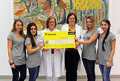 Der „Internationale Tag der Seltenen Krankheiten“ im vergangenen Jahr war Startschuss für ein engagiertes Maturaprojekt: Schülerinnen der HAK Kitzbühel haben ein Jahr lang mit mehreren Aktionen, darunter Informationstage in den Innsbrucker Rathausgalerien sowie einer Benefiz-Kunstauktion, auf das Thema Seltene Krankheiten aufmerksam gemacht und Spenden gesammelt. Rechtzeitig zum „Rare Diseases Day 2014“ erfolgte die Scheckübergabe. Vanessa Luchner, Nicola Pedratscher, Stefanie Tröger und Laura Beqa unterstützen die Forschungsgruppe „Seltene Krankheiten“ an der Innsbrucker Kinderklinik mit 7.000 Euro.