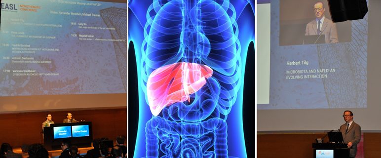 Die nicht alkoholische Fettlebererkrankung (non-alcoholic fatty liver disease, NAFLD) zählt mittlerweile zu den weitverbreitetsten Lebererkrankungen weltweit. Rund 350 Teilnehmer:innen trafen sich kürzlich in Innsbruck zur von Univ.-Prof. Herbert Tilg und Univ.-Prof. Michael Trauner vom AKH Wien organisierten Konferenz der „European Association for the Study of the Liver“ (EASL) mit dem Titel: „Mikrobiota, Stoffwechsel und NAFLD“. Für Expert:innen liest sich die Teilnehmer:innen-Liste aber wie das „Who is Who“ der internationalen Forschungselite zur nicht-alkoholischen Fettlebererkrankungen (NAFLD). Der Direktor der Innsbrucker Univ.-Klinik für Innere Medizin I der Medizinischen Universität Innsbruck, Univ.-Prof. Dr. Herbert Tilg, hatte sich erfolgreich um die Austragung des renommierten Treffens bemüht. „Im Vordergrund der monothematischen Konferenz stehen vor allem die neuesten Erkenntnisse zur Mikrobiota bei dieser Erkrankung. Inzwischen wird unsere These, dass die gigantische Keimwelt im Darm als Krankheitsverursacher in Frage kommt bzw. ein wesentlicher, treibender Faktor ist, weltweit anerkannt“, sagt Univ.-Prof. Tilg. Die Darmflora ist mit ihren Trillionen von Keimen extrem komplex, spielt aber eine entscheidende Rolle im Stoffwechsel des Menschen. Die Mikrobiota ist daher in den vergangenen Jahren zu einem wichtigen Forschungsthema geworden.