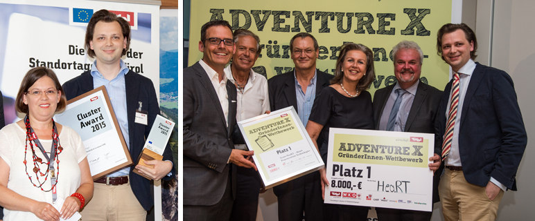 Vor wenigen Tagen wurden zudem die besten Forschungs-, Entwicklungs- und Innovationsprojekte aus den Tiroler Clustern in den Kategorien Erneuerbare Energien, Informationstechnologien, Life Sciences, Mechatronik, Wellness und Kooperation von Wissenschaft & Wirtschaft ausgezeichnet. Das Team HeaRT konnte sich auch hier in der Kategorie Life Sciences den Cluster Award 2015 sichern.