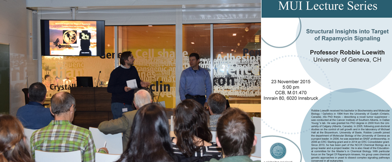 Target Of Rapamycin (TOR) – eine in allen Eukaryonten konservierte Proteinkinase, die eine zentrale Rolle in der zellulären Koordination von Nährstoffangebot und Wachstum und damit in der Entstehung von Krebs und Stoffwechselerkrankungen spielt, stand im Mittelpunkt eines Vortrages von Professor Robbie Loewith, der am 23. November im Rahmen der MUI-Lecture Series zahlreiche Interessierte ins Innsbrucker Biozentrum führte.
