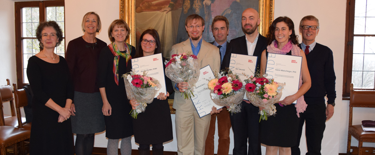 Im Rahmen eines würdevollen Festaktes in der Weiherburg wurde am 18. Dezember der Preis der Landeshauptstadt Innsbruck für wissenschaftliche Forschung 2015 an der Medizinischen Universität Innsbruck vergeben. Die Forscher:innen Dr.in Renate Pichler, Assistenzprofessorin Mag.a Katrin Watschinger PhD, Dr. Manfred Nairz PhD und Dr. Ivan Tancevski wurden für ihre hervorragenden Arbeiten ausgezeichnet.