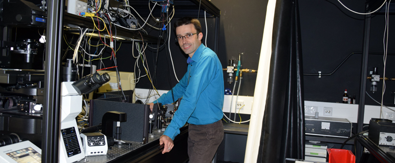 Neben der programmierbaren Optik forscht Jesacher im Rahmen eines neuen FWF-Projekts auch auf dem Gebiet der 3D-Nanoskopie, also der höchstauflösenden Fluoreszenzmikroskopie. In Zusammenarbeit mit Prof. Gerhard Schütz vom Institut für angewandte Physik an der TU Wien nimmt der leidenschaftliche Physiker das adaptive Immunsystem unter die Lupe, genauer, die Kontaktstelle zwischen Abwehrzellen (T-Zellen) und Fremdproteinen. „Wir wollen drei der weltweit präzisesten Einzelmolekül-Messtechniken weiterentwickeln und in einem einzigen Mikroskop vereinen. Dadurch erwarten wir uns dreidimensionale Positionsbestimmungen im Bereich von bis zu 10 nm Genauigkeit“, erklärt der Medizin-Physiker, dem die Weitergabe seines Know-Hows an Studierende in Block-Seminaren oder in der Vorlesung „Einführung in die Optik“ großen Spaß macht.