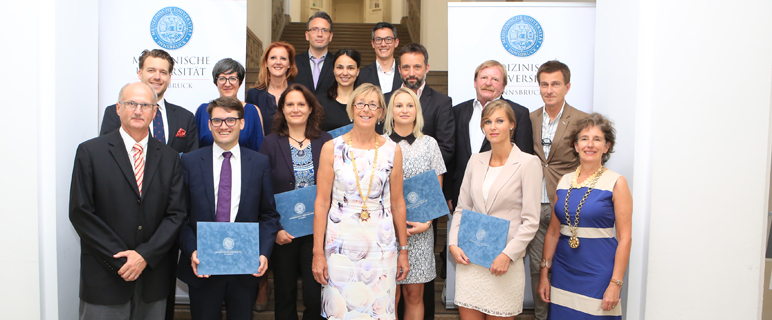 Ehe die einzelnen Kandidatinnen und Kandidaten ihre Urkunden überreicht bekamen, bot die Vizerektorin für Forschung und Internationales, Univ.-Prof.in Dr.in Christine Bandtlow, einen Überblick über die Bedeutung der Verleihung der „Venia Docendi“, der höchstrangigsten Hochschulprüfung in Österreich. Im Rahmen eines akademischen Prüfungsverfahrens wird die Lehrbefähigung (facultas docendi) in einem wissenschaftlichen Fach festgestellt. Die Anerkennung der Lehrbefähigung bildet die Voraussetzung für die zusätzliche Erteilung der Lehrerlaubnis oder Lehrbefugnis (venia legendi). Das Verfahren wird durch den Satzungsteil „Habilitationsordnung“ der Medizinischen Universität Innsbruck geregelt.