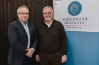 In seinen Grußworten dankte Brezinka den Mitgliedern für ihre Treue und dem ALUMN-I-MED Hauptsponsor der ersten Stunde, der Hypo Tirol Bank, für die jahrelange Unterstützung. Auch seinen drei Vorgängern im Amt des Präsidenten, Raimund Margreiter, Thomas Luger und Gründungsrektor Hans Grunicke sprach Brezinka seinen persönlichen Dank aus. Rektor Wolfgang Fleischhacker, der mit seiner Amtsübernahme am 1. Oktober 2017 auch Mitglied im ALUMN-I-MED Vorstand geworden ist, gratulierte anschließend der Absolvent:innenorganisation zu ihrem Engagement in den vergangenen Jahren.