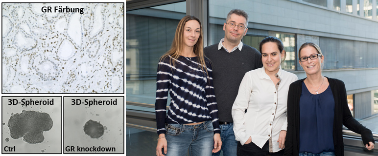 Diese weitreichende Erkenntnis steht aufgrund von Untersuchungen in Zelllinien – in 3D Kulturen sowie auch von Patienten-Gewebeproben – auf einer sehr breiten Basis. „In unseren Versuchen konnten wir feststellen“, so Julia Höfer, „dass der GR während der Antiandrogen-Blockade schon nach kurzer Behandlungsdauer extrem hochreguliert wird und zum Teil Funktionen des AR-Signalweges übernimmt“. Das renommierte Journal Clinical Cancer Research berichtet über die Untersuchungsergebnisse. „Nachdem Glukokortikoide – die natürlichen Liganden des GR – in der Therapie des Prostatakarzinoms im Sinne einer Nebenwirkungsreduktion sehr häufig verabreicht werden, ist es unerlässlich, die Rolle dieser Hormone sowie des GR-Signalwegs in der Resistenzentwicklung im Detail aufzuklären, um bestehende Therapiekonzepte zu optimieren“, beschreibt Puhr die Forschungsthematik, welche momentan ein Hot-Topic der uro-onkologischen Forschung weltweit darstellt.
