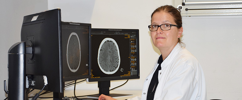 Schon im Gymnasium war für Astrid Grams klar, dass sie Medizin studieren und Ärztin werden würde. „Etwas anderes kam für mich einfach nicht in Frage“, meint sie schmunzelnd. Und bereits während des Medizinstudiums an der Ludwig-Maximilians-Universität München war ebenso klar, dass sie in ihrem ärztlichen Beruf immer auch einen aktiven Beitrag zur Forschung leisten möchte. Mit diesem Hintergrund war die Facharztausbildung in Radiologie naheliegend. „Besonders spannend war und ist für mich die Verbindung von Technik und Medizin. In den bildgebenden Verfahren, die wir als Ärztinnen und Ärzte anwenden, gibt es unheimlich rasch technologische Innovationen, die es uns ermöglichen neue, medizinische Erkenntnisse zu gewinnen. Hinzu kommt auch, dass wir uns intensiv mit Kolleginnen und Kollegen aus den verschiedensten medizinischen Fachrichtungen austauschen und damit immer wieder mit den neuesten wissenschaftlichen Fragestellungen konfrontiert sind.“ Ihre Ausbildung führte sie aus München zunächst nach Essen und nach Gießen. Hier spezialisierte sie sich im Bereich der Neuroradiologie und traf auch ihre heutige Chefin, Univ.-Prof.in Dr.in Elke R. Gizewski, die sie 2012 überzeugte, an die Univ. Klinik für Neuroradiologie nach Innsbruck zu kommen.