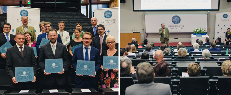 Die Leistungen des wissenschaftlichen Nachwuchses besonders zu würdigen, ist eines der zentralen Anliegen der Medizinischen Universität Innsbruck. Die Veranstaltung „Science Day – Akademische Feier zur Verleihung der Venia Docendi“ ist seit 2014 das Aufnahme- und Begrüßungsritual für die neuen Privatdozent:innen. Diesmal präsentierten sich neun Habilitand:innen im großen Hörsaal des Kinder- und Herzzentrums in Innsbruck. Rektor W. Wolfgang Fleischhacker begrüßte die Teilnehmer:innen. „Mein Rektoratsteam und ich möchten Ihnen mit dieser Veranstaltung zu Ihrer Habilitation gratulieren. Es ist uns aber auch wichtig, uns bei Ihnen für Ihr überdurchschnittliches Engagement im akademischen Bereich zu bedanken. Damit tragen Sie in hervorragender Weise nicht nur zum Fortschritt der Wissenschaften, sondern auch zum Standing unserer Universität bei, und sind Vorbilder für den wissenschaftlichen Nachwuchs. Mögen diesem ersten wichtigen universitären Karriereschritt weitere erfolgreiche folgen!“