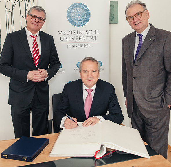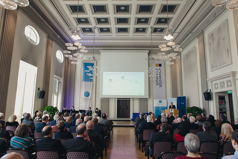 An der Medizinischen Universität Innsbruck wurde am 1. Dezember zum zehnten Mal der renommierte Ilse und Helmut Wachter-Preis für herausragende Leistungen auf dem Gebiet der medizinischen Forschung verliehen. Der diesjährige Preisträger, Matthias Hentze, Direktor des European Molecular Biology Laboratory (EMBL) in Heidelberg (D), erhielt die Auszeichnung für seine bahnbrechenden Arbeiten auf dem Feld der RNA Biologie.