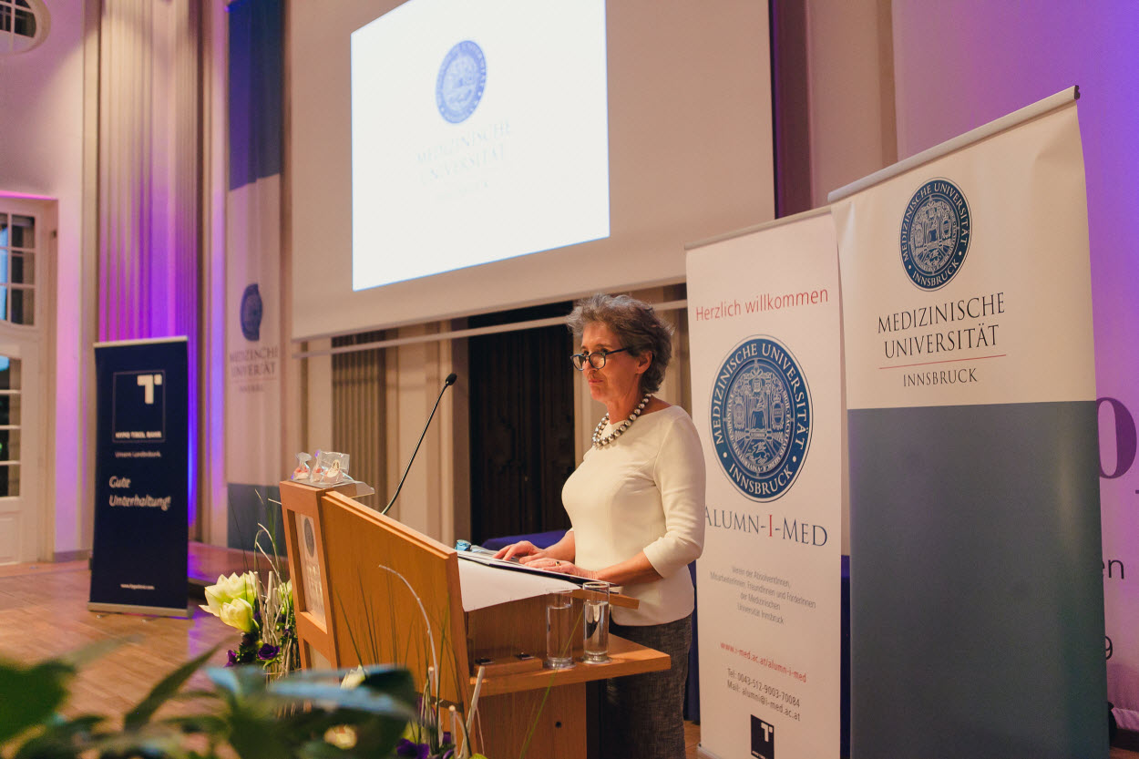 Auch Innsbrucks Vizebürgermeister Franz Xaver Gruber und Christian J. Wiedermann, Geschäftsführer der Tirol Kliniken, drückten in ihren Grußworten ihre Verbundenheit zur Medizinischen Universität Innsbruck aus. Ehrende Worte für Jubilare und Mitarbeiter:innen, die im vergangenen Jahr in den Ruhestand traten, fand Vizerektorin Christine Bandtlow.