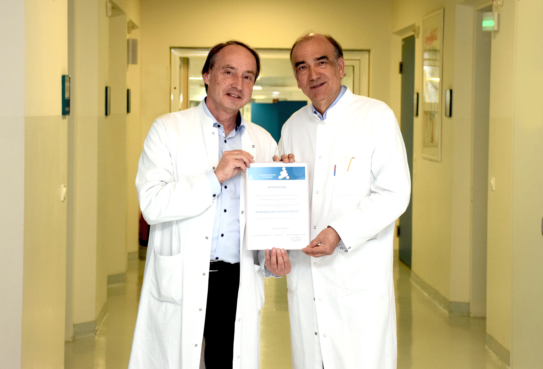 Auf der diesjährigen Jahrestagung der Deutschen Gesellschaft für Audiologie (DGA) in Heidelberg erhielt die Innsbrucker Univ.-Klinik für Hör-, Stimm- und Sprachstörungen (HSS) (Direktor: Patrick Zorowka) die Zertifizierung als „Audiologisches Zentrum“.