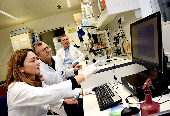 Wie wichtig die Forschung in diesem Bereich ist, zeigen die Zahlen: Bei etwa 5000 Männern wird in Österreich jährlich ein Prostatakarzinom diagnostiziert. In vielen Fällen handelt es sich dabei jedoch um ein niedrig malignes Karzinom, das keiner aktiven Therapie bedarf. Da bislang jedoch im klinischen Alltag keine eindeutige Unterscheidung zwischen aggressiven und nicht-aggressiven Tumoren im Rahmen der Tumorfrüherkennung erfolgen konnte, hat dies häufig eine Übertherapie zur Folge. „Grundsätzlich ist die Erkrankung bei früher Erkennung gut behandelbar, im fortgeschrittenen Stadium kann Prostatakrebs bisher jedoch nur durch eine medikamentöse Blockade des männlichen Sexualhormons Androgen für eine begrenzte Zeit aufgehalten werden. Prostatakrebszellen sind nämlich nach einer bestimmten Behandlungsdauer in der Lage, die Hormontherapie zu umgehen“, erklärt Culig. In einer aktuellen, erschienen im Fachblatt Molecular Cancer Therapeutics, Publikation von Florian Handle (Letztautor Zoran Culig), der nach dem Abschluss des PhD-Studiums in Innsbruck derzeit als Postdoc in Leuven arbeitet, konnte nun zum ersten Mal nachgewiesen werden, dass die Substanz Galiellalakton weite Signalwege beim Prostatakarzinom inhibiert. „Sowohl Zytokine als auch androgene Rezeptoren sind beide im resistenten Prostatakarzinom aktiv. Die Idee ist nun, dass mit dieser Substanz, die in diversen Studien in der Klinik verwendet wird, nicht nur ein Signalweg sondern zwei Signalwege, gleichzeitig inhibiert werden und dass dadurch die Therapie auf eine breitere Basis gestellt wird.“
