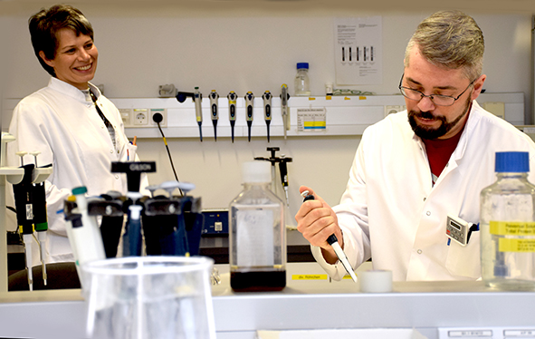 Natalie Sampson und Martin Puhr vom Team Experimentelle Urologie. (Foto:MUI/Bullock)