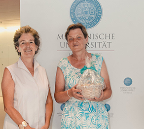 Unmittelbar vor dem diesjährigen Sommerfest, das am 28. Juni 2019 im CCB stattfand, verabschiedete Vizerektorin Univ.-Prof.in Dr.in Christine Bandtlow in Dankbarkeit und Anerkennung für ihre Leistungen Univ.-Prof. Mag. Dr. Nikolaus Romani und Rita Holzknecht in den „(Un-)“Ruhestand.