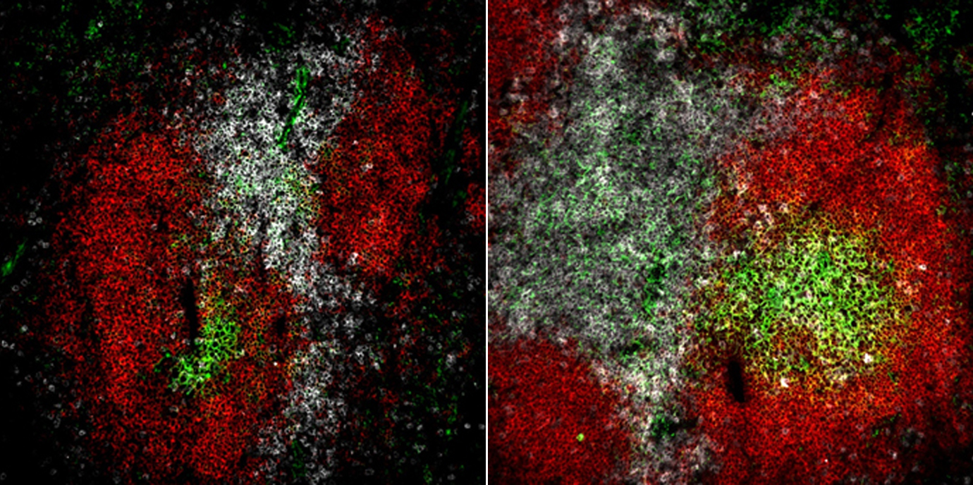 Ziel dieser Arbeit war es nun, den funktionellen und den molekulare Mechanismus von NR2F6 in follikulären CD4 Helfer und Keimzentrums B Zellen im Mausmodell aufzuklären. „Mäuse, denen der Kernrezeptor NR2F6 fehlt, bilden nach Immunisierung eine verstärkte Keimzentrumsreaktion mit erhöhter Zahl an follikulären CD4 Helfer Zellen, B Zellen und Plasma Zellen aus und entwickeln somit im Alter ein Krankheitsbild, das dem humanen SLE gleicht“, erklärt Erstautor und PhD-Student William Olson. In adaptiven Übertragungsexperimenten konnte das Team erstmals im Detail die Zell intrinsiche Rolle von NR2F6 in follikulären T Helfer Zellen untersuchen. Vor allem der pro-entzündliche Botenstoff Interleukin-21 verursacht die Überreaktion der T und B Zellen bei SLE. Nun konnten zum ersten Mal jene Bereiche identifiziert werden, an die NR2F6 in der Promoterregion des IL-21 Gens bindet. „Die Relevanz der erhöhten IL-21 Produktion konnten wir durch die spezifische Blockade des IL-21 Rezeptors in Mäusen ohne NR2F6 nachweisen, da dadurch die Akkumulatoin der T Helferzellen und damit die überschießende Immunreaktion eindrucksvoll verringert wurde“, ergänzt Olson.
