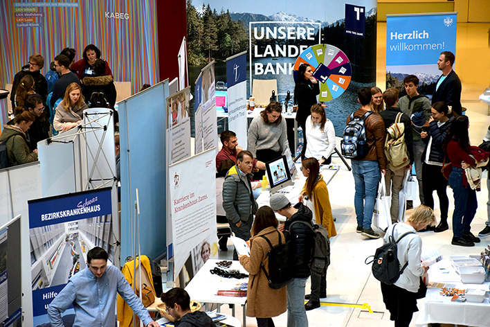 Die jährlich im Wintersemester stattfindende KPJ-Messe an der Medizinischen Universität Innsbruck hat sich als eine wichtige Netzwerk- und Austauschveranstaltung für Studierende und potentielle, künftige Arbeitgeber etabliert. Auch heuer präsentierten sich wieder die akkreditierten Lehrkrankenhäuser und Lehrabteilungen im CCB um junge Mediziner:innen, die sich für einen Ausbildungsplatz im Rahmen des KPJ interessieren, kennen zu lernen.