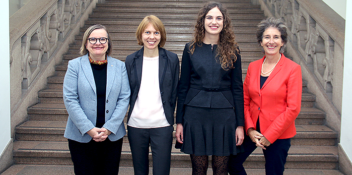 Stephanie Mangesius (Universitätsklinik für Neuroradiologie, Direktorin Elke R. Gizewski, Medizinische Universität Innsbruck) und Daniela Schiefeneder (Institut für Mathematik, Leopold-Franzens-Universität Innsbruck, Kooperationspartner Markus Haltmeier) wurden für ihr gemeinsames Projekt zur verbesserten Diagnose und Prognose Multipler Sklerose mit dem Jubiläumsfonds der Innsbrucker Universitäten ausgezeichnet (im Bild mit den Vizerektorinnen Christine Bandtlow und Ulrike Tanzer).