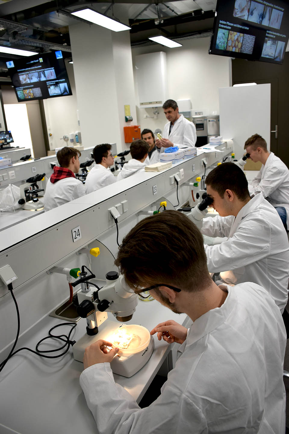 Im Rahmen der „Open Labs Days“ besuchen die Schüler:innen jeweils an zwei Vormittagen Vorträge und Einführungen im neuen Audimax, bevor sie dann an Experimenten in den modernen Ausbildungslaboren im neuen Lehr- und Lerngebäude in der Fritz-Pregl-Straße 3 teilnahmen. An acht verschiedenen Stationen konnte erlernt werden, wie beispielsweise die eigene DNA präpariert wird oder wie Moleküle aufgetrennt werden. Zudem gab es viele praktische Einblicke in die spannende Welt von Zellkulturen, Bakterien und Schimmelpilzen.