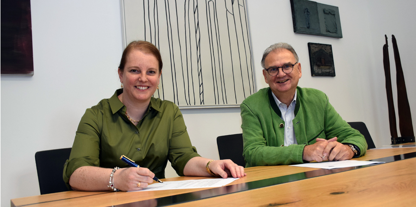 An der Spitze der Innsbrucker Univ.-Klinik für Gefäßchirurgie steht ein Generationenwechsel bevor. Der langjährige und renommierte Direktor Gustav Fraedrich wird in den Ruhestand gehen. Jetzt hat Rektor W. Wolfgang Fleischhacker die Oberärztin am Universitären Herz- und Gefäßzentrum Hamburg, Sabine Wipper, zur Professorin für Gefäßchirurgie berufen. Der Wechsel von Hamburg nach Innsbruck bedeutet für Sabine Wipper auch einen Schritt näher an ihre Heimat. Die ausgezeichnete Fachärztin für Gefäßchirurgie ist in München aufgewachsen und hat dort auch studiert. Ein Teil ihrer Familie stammt aus Kochel am See. „Wir haben mit Sabine Wipper eine ausgezeichnete Ärztin, Forscherin und engagierte Lehrkraft berufen und damit die Weichen für die Zukunft der Gefäßchirurgie in Innsbruck gestellt. Das Rektoratsteam freut sich, eine kompetente und talentierte Frau im Kollegium der Professorinnen und Professoren begrüßen zu können. Wir freuen uns sehr auf die spannende Zusammenarbeit“, sagt Rektor W. Wolfgang Fleischhacker bei der Vertragsunterzeichnung.