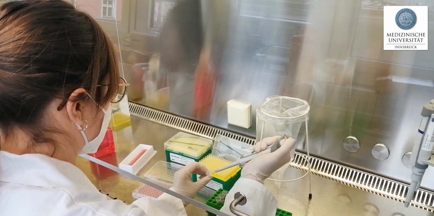 Nur rund zehn Tage nachdem am Institut für Virologie der Medizinischen Universität Innsbruck erstmals eine PCR-Probe positiv auf die Virusvariante Omicron getestet worden war, konnte ein Team um die Virologinnen Janine Kimpel und Dorothee von Laer (Institutsleiterin) erste Ergebnisse auf einem Preprint-Server hochladen. In der Studie wurde untersucht, ob in den Blutproben von Genesenen und zweifach Geimpften neutralisierende Antikörper auf die Virusvariante Omicron gebildet werden. Kurz zuvor hatten nur Kolleg:innen aus Frankfurt und Südafrika ähnliche Studienergebnisse vorveröffentlicht, allerdings wurden für deren Arbeiten nicht acht verschiedene Gruppen von Genesenen und Geimpften untersucht. „Wir haben gewusst, dass mehrere Teams daran arbeiten, aber es war beruhigend zu sehen, das wir unabhängig voneinander zu ähnlichen Ergebnissen gekommen sind“, erklärt Janine Kimpel, korrespondierende Autorin der Forschungsarbeit. Rund 15 Mitarbeiter:innen haben direkt und indirekt dazu beigetragen, dass die validen Ergebnisse so schnell hervogebracht werden konnten. Die Studienergebnisse fanden dann auch internationale Beachtung, denn die weltweite Forschungsgemeinschaft möchte so schnell wie möglich neue Erkenntnisse zu Omicron liefern. Ein kurzes Video zeigt, wie das Team um Janine Kimpel und Dorothee von Laer am Institut für Virologie arbeitet: