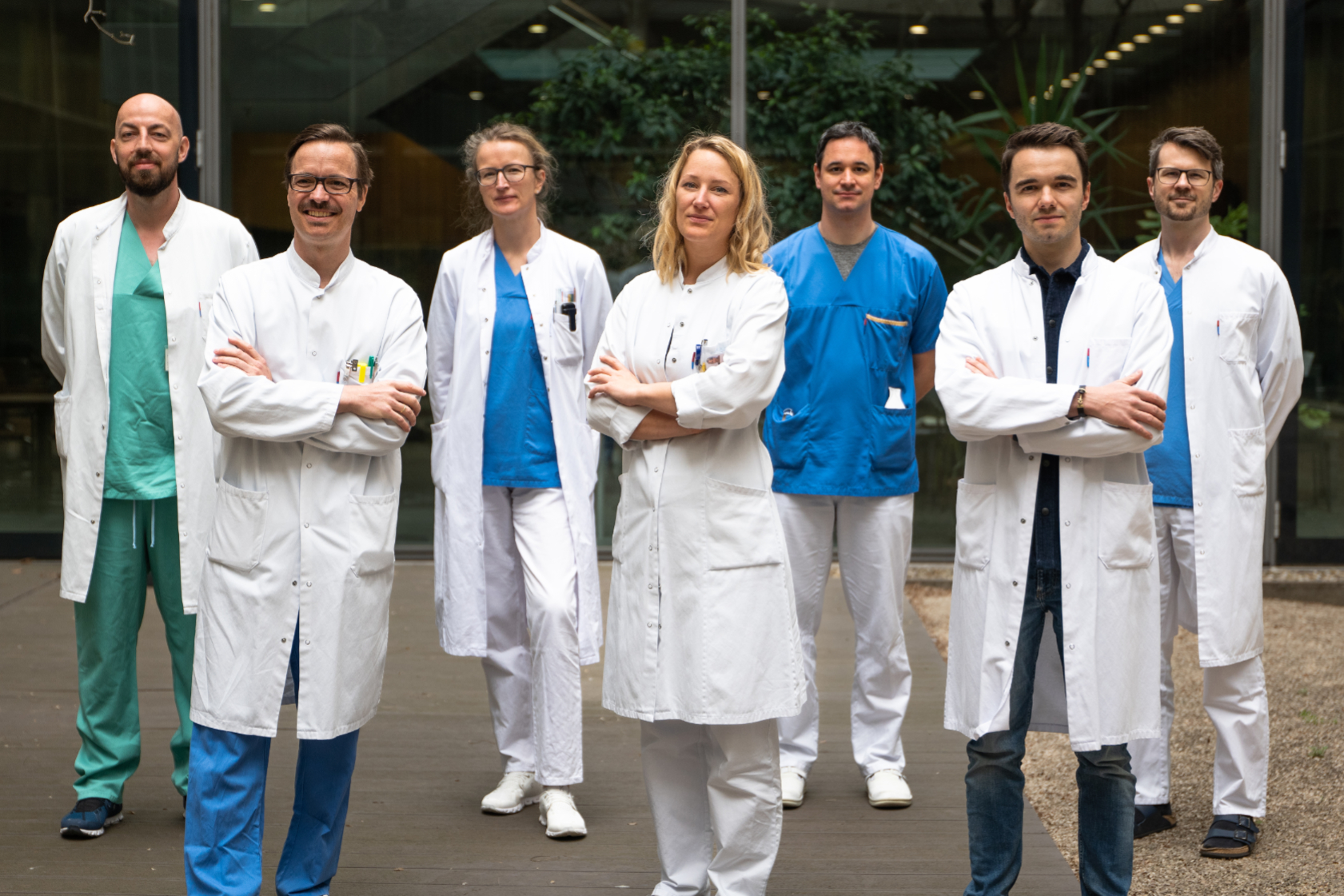 BU: Das Innsbrucker Studienteam, v.l.: Ivan Tancevski, Gerlig Widmann, Judith Löffler-Ragg, Anna Luger, Thomas Sonnweber, Christoph Schwabl und Leonhard Gruber. ©L. Gruber/Radiologie Innsbruck