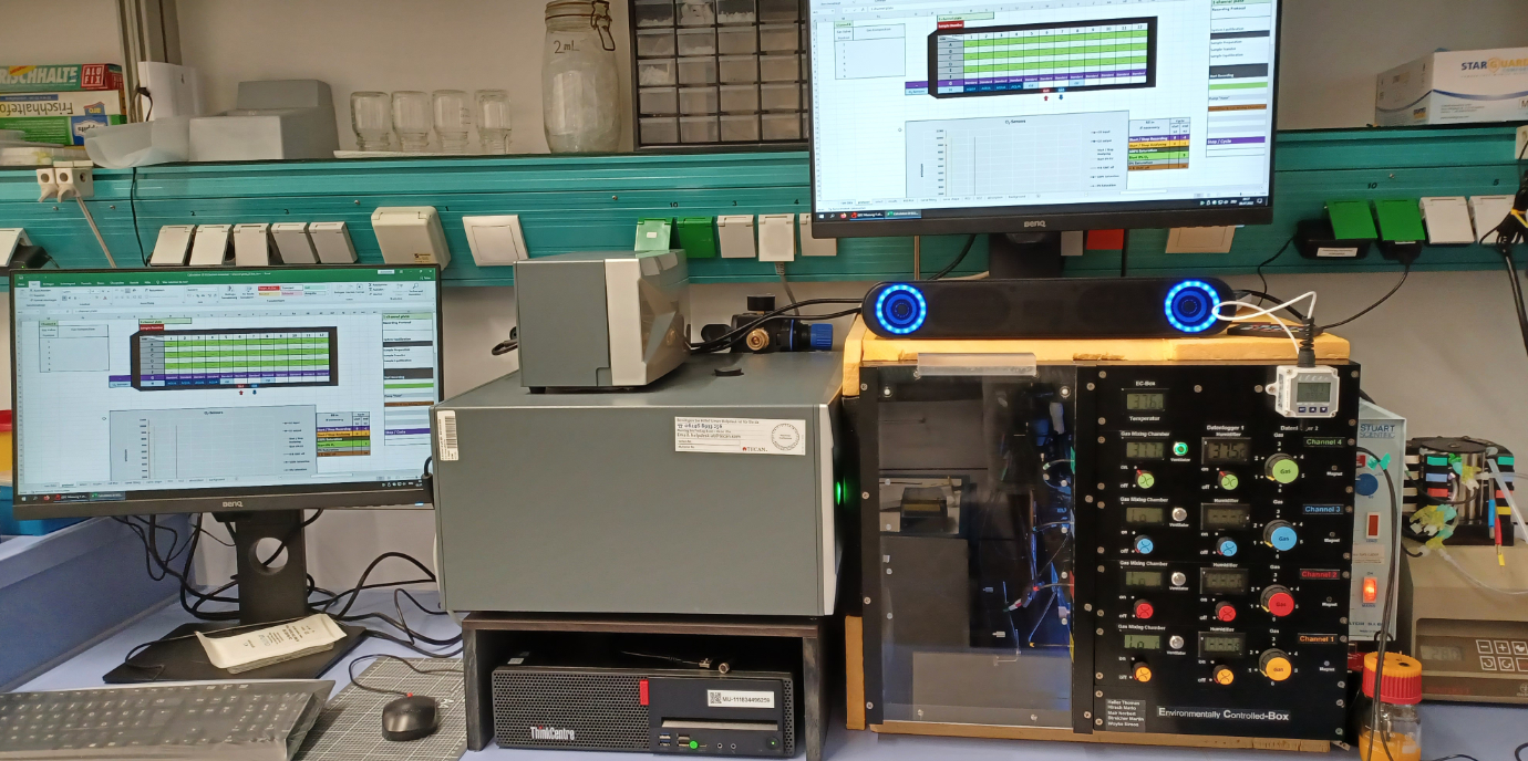 Alles begann im Jahr 2014 mit einer Höhenphysiologie Vorlesung, die Simon Woyke, damals noch Student, bei Thomas Haller vom Institut für Physiologie (Direktorin: Michaela Kress) besuchte. 2017 kam Woyke, der mittlerweile als Assistenzarzt an der Univ.-Klinik für Anästhesie und Intensivmedizin (Direktorin: Barbara Sinner) tätig ist, auf Haller mit seinem Forschungsvorhaben zu. Er wollte dem so genannten Triple-H Syndrom (Hypoxie, Hyperkapnie, Hypothermie), das im Rahmen einer Lawinenverschüttung auftreten kann, auf den Grund gehen. Eine wichtige Rolle beim Auftreten von Triple-H dürfte die Sauerstoffbindungskurve spielen. Da das einzige bis dahin verfügbare Messgerät aber erstens sehr teuer, und zweitens, aufgrund seines geringen Durchsatzes von wenigen Proben pro Tag für Screenings und groß angelegte Studien ungeeignet erschien, machten er und Haller sich nach einem ausführlichen Literaturstudium daran, ihr eigenes Gerät zu bauen. Wertvolle Unterstützung erhielten sie dabei von den hauseigenen Werkstätten des Instituts für Physiologie, mit Martin Streicher, der die Feinmechanikwerkstatt leitet und Mario Hirsch, dem Chef der Elektronikwerkstatt. Die verwendeten Materialien sind so unkonventionell wie einfach und reichen von high-tech Materialien bis hin zu Rohren, die an der benachbarten Baustelle des Lehr- und Lerngebäudes in der Fritz-Pregl-Straße 3, abfielen.