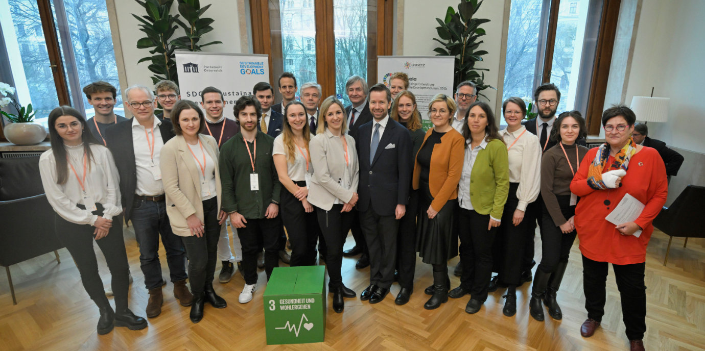 Auf Einladung des österreichischen Nationalrates erschien Ende Jänner eine zehnköpfige Abordnung der Medizinischen Universität Innsbruck im wiedereröffneten Parlamentsgebäude in Wien. In Zusammenarbeit mit den SDG-Botschafter:innen des Hohen Hauses präsentierte die UniNEtZ-Projektgruppe den Abgeordneten deren Vorschläge zur Umsetzung der UN-Nachhaltigkeitsagenda 2030.