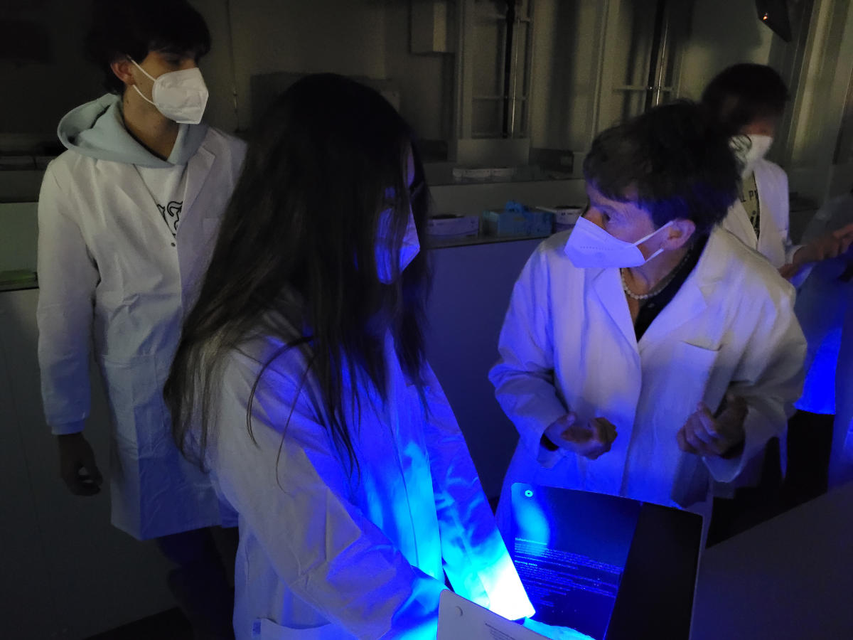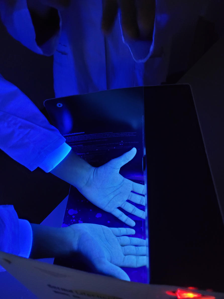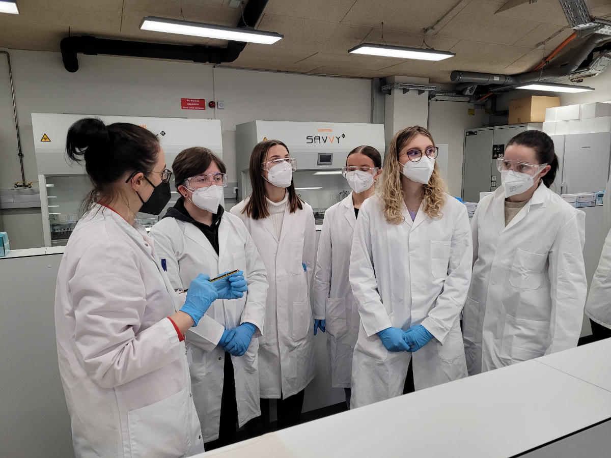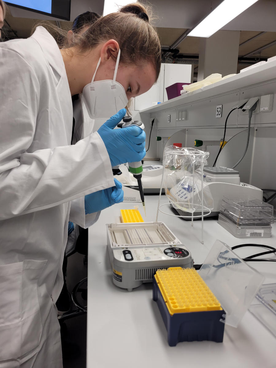 Open Labs Days wären keine Open Labs Days, wenn die Schüler:innen nicht selbst im Labor Hand anlegen dürften. Und so schlüpften sie für verschiedene Praxis- und Experimentiereinheiten selber in den Labormantel. An insgesamt acht Stationen, die von vielen motivierten Helfer:innen der Med Uni betreut wurden, durften sie ihrer Neugierde freien Lauf lassen und den Wissensdurst stillen. Dabei ging es um den Aufbau und die Funktion von Zellen, die Manipulation von DNA und richtige Handhygiene und Desinfektion. An zwei Stationen durften sich die Besucher:innen am Einfärben von Schnitten und Mikroskopieren ausprobieren. Michael Außerlechner und Judith Hagenbuchner stellten mit viel Witz und zahlreichen Küchenanalogien ihr 3D Bioprinting Labor vor. In einem Labor widmeten sich die Schüler:innen der Genomsequenzierung und, last but not least, wurden noch analytische Methoden zur Auftrennung von Molekülen gezeigt.