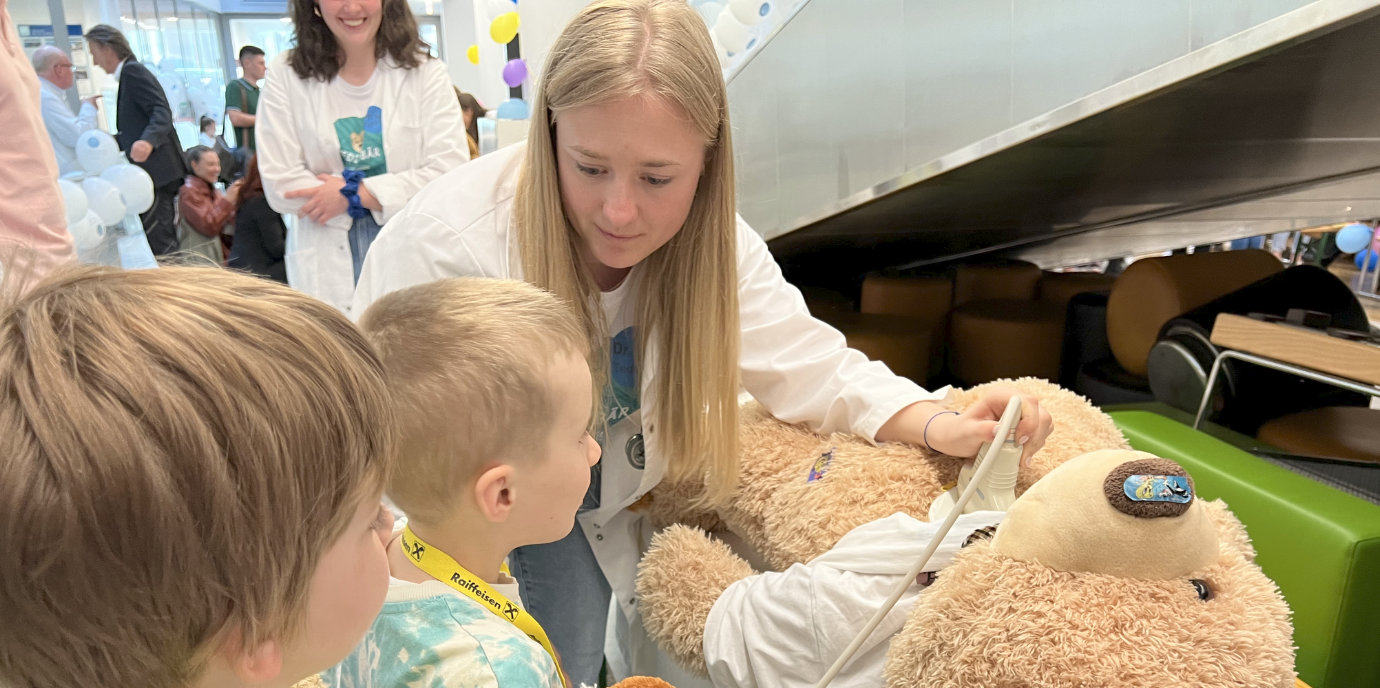 Einmal im Jahr öffnet das Teddybärkrankenhaus am Innsbrucker Kinderzentrum seine Pforten für Kinder im Kindergarten- bis Volksschulalter, die ihre kranken Plüschgefährten von ehrenamtlichen „Teddyärzt:innen“ – Student:innen der Medizin-, Zahnmedizin- und Ergotherapie – verarzten lassen möchten. Vom Untersuchungsraum über ein Röntgen, Ultraschall und dem OP bis hin zur Apotheke können die Kinder viele Stationen besuchen, die ihnen auch im echten Leben in der Klinik oder in Ordinationen begegnen können. Ziel ist es, ihnen dabei auch die Angst vor dem Krankenhaus zu nehmen.