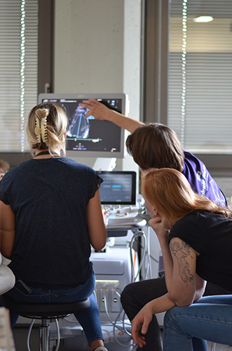 BU: Studierende legten am Ultraschall selbst Hand an. (c) Lasserre