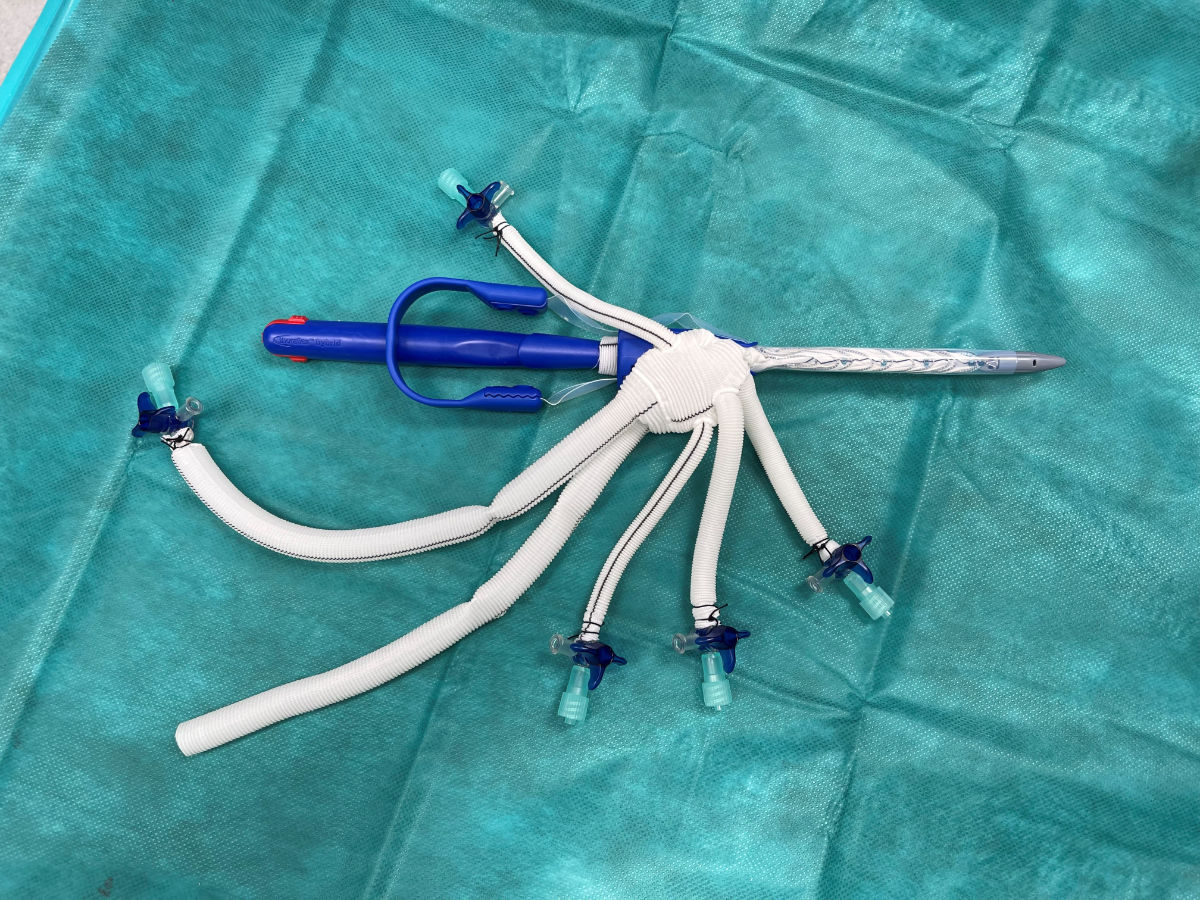 Vierzehnmal hatte die Gefäßchirurgin Sabine Wipper die Hauptschlagader-Prothese in internationalen Zentren weltweit eingesetzt. Anfang Mai wurde die Operation zum ersten Mal an der Klinik Innsbruck zusammen in einem interdisziplinären Setting durchgeführt. „Hier in Innsbruck operieren wir derart komplexe Eingriffen interdisziplinär, um auf alle Eventualitäten sofort reagieren zu können“, erklärt Sabine Wipper. In diesem Fall bestand das Team aus Spezialist:innen der Bereiche Gefäßchirurgie, Anästhesie, Herzchirurgie und Allgemeinchirurgie.