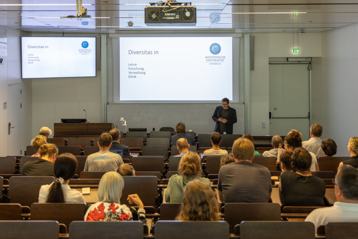 Wie kommt Diversität in die Grundlagenforschung? Im Rahmen der „Woche der Vielfalt“ widmete die Koordinationsstelle Gleichstellung, Frauenförderung und Diversität dieser Frage einen Nachmittag im Biozentrum von Medizinischer Universität und Leopold-Franzens-Universität Innsbruck. Medizin-Uni-Vizerektor Wolfgang Prodinger begrüßte die Gäste und moderierte die Veranstaltung. Veronika Sexl, Rektorin der Universität Innsbruck betonte in ihren einleitenden Worten, die Notwendigkeit ein größeres Bewusstsein für Diversität in Lehre und Forschung zu schaffen und allen Hürden und Widerständen zu trotzen. „Universität lebt von Vielfalt und braucht Entgrenzung für Ideen und Originalität. Nur mit einem 360 Grad Rundumblick können wir das wissenschaftliche Potenzial erschließen. Wir müssen das Ineinanderfließen der Disziplinen fördern, Frauen in die Universität bringen sowie Bewusstsein und Rahmenbedingungen schaffen, um Diversität in die Grundlagenforschung zu bringen“, sagte die Rektorin.