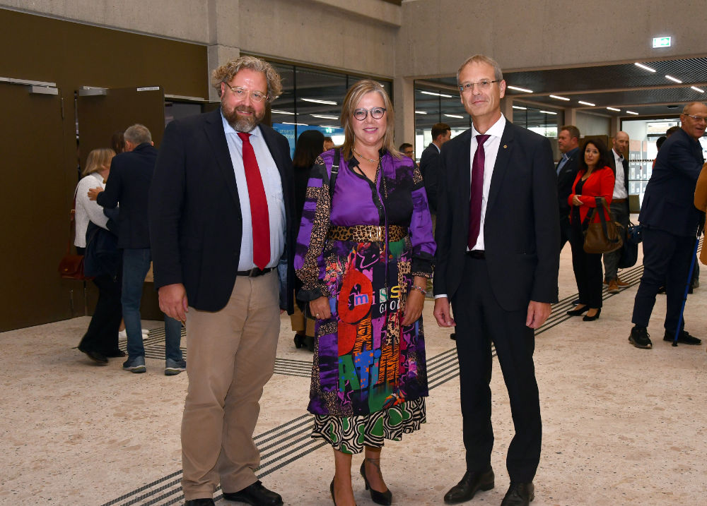 Im neuesten Hörsaal Tirols, dem Audimax des kürzlich errichteten Gebäudes der Leopold-Franzens-Universität Innsbruck, dem Ágnes Heller Haus, fand der diesjährige Empfang der Tiroler Hochschulen zum Semesterbeginn 2023/24 statt. Über 150 Teilnehmer:innen hatten sich angemeldet und verfolgten eine spannende Podiumsdiskussion zum Thema Wissenschaftsvermittlung. Auf der Bühne diskutierten Rudolf Anschober, Bundesminister a.D., Cornelia Lass-Flörl, Direktorin des Instituts für Hygiene und Medizinische Mikrobiologie, Elke Ziegler, Wissenschaftsjournalistin ORF, und Sophia Quirchmair, Landesschulsprecherin 2022/2023. Wolfgang Fleischhacker, Rektor der Medizinischen Universität Innsbruck, übernahm die Moderation. Veronika Sexl, Rektorin der Leopold-Franzens-Universität Innsbruck, nutzte die Gelegenheit, das neue Gebäude vorzustellen. Nach dem offiziellen Programm hatten die zahlreichen Besucher:innen beim „Get together“ Gelegenheit, sich auszutauschen.