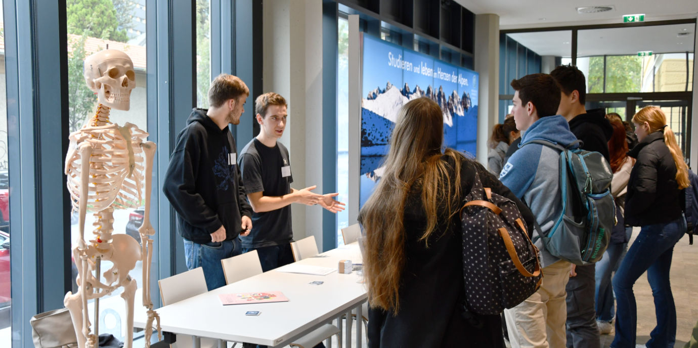 Ein Medizinstudium in Innsbruck ist für viele junge Menschen eine attraktive Studienmöglichkeit. Das zeigen die hohen Besucherzahlen an den Infoständen, Mitmach-Stationen und Vorträgen der Medizinischen Universität Innsbruck beim Tiroler Hochschultag 2023. Am 19. Oktober 2023 öffneten wieder alle acht Tiroler Hochschulen ihre Türen für Schüler und Schülerinnen.