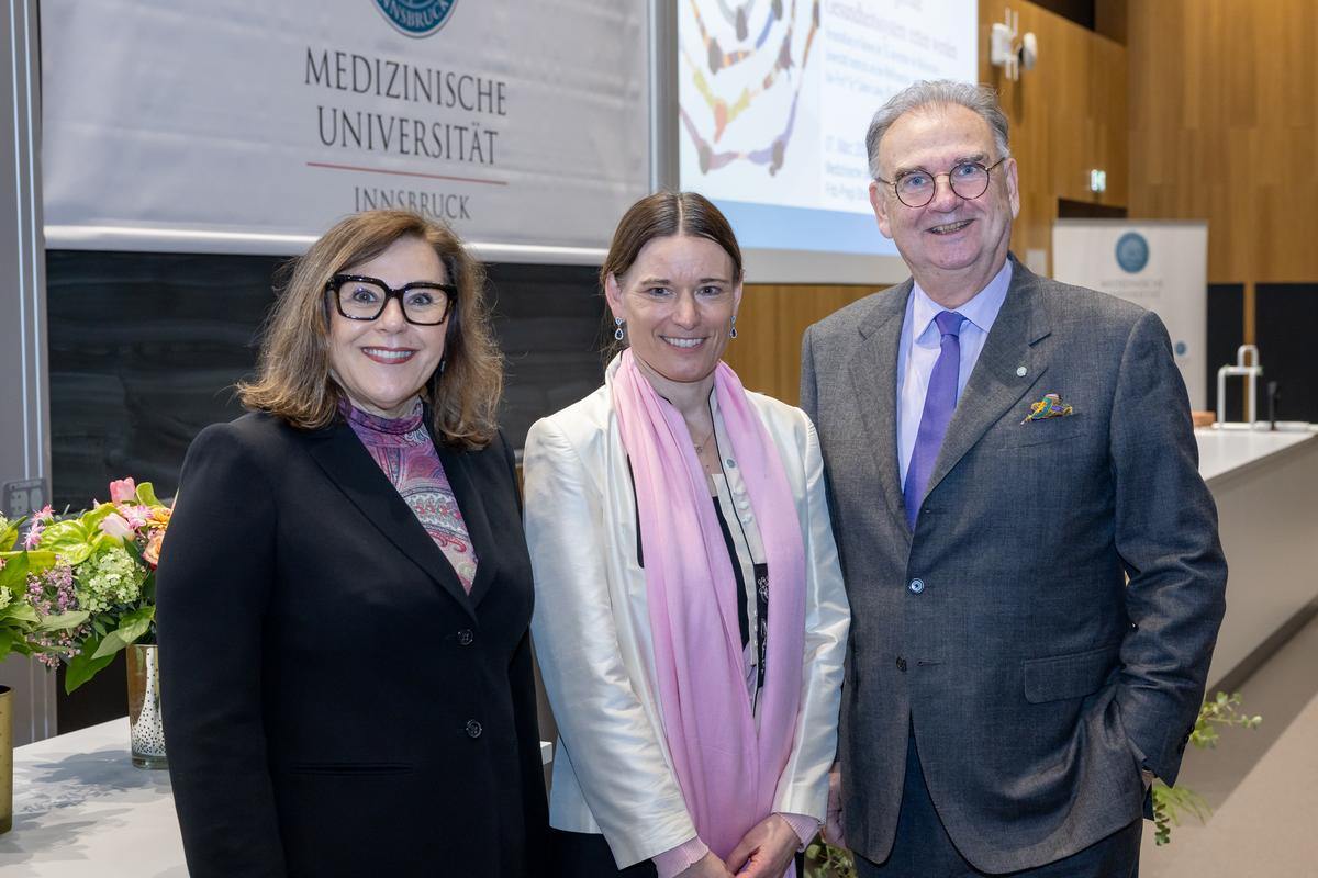 Die Antrittsvorlesung von Sabine Ludwig am 7. März, dem Abend vor dem Weltfrauentag, zog viele Besucher:innen, darunter bekannte Gesichter aus Wissenschaft, Klinik und Politik, in den großen Hörsaal der Med Uni Innsbruck.