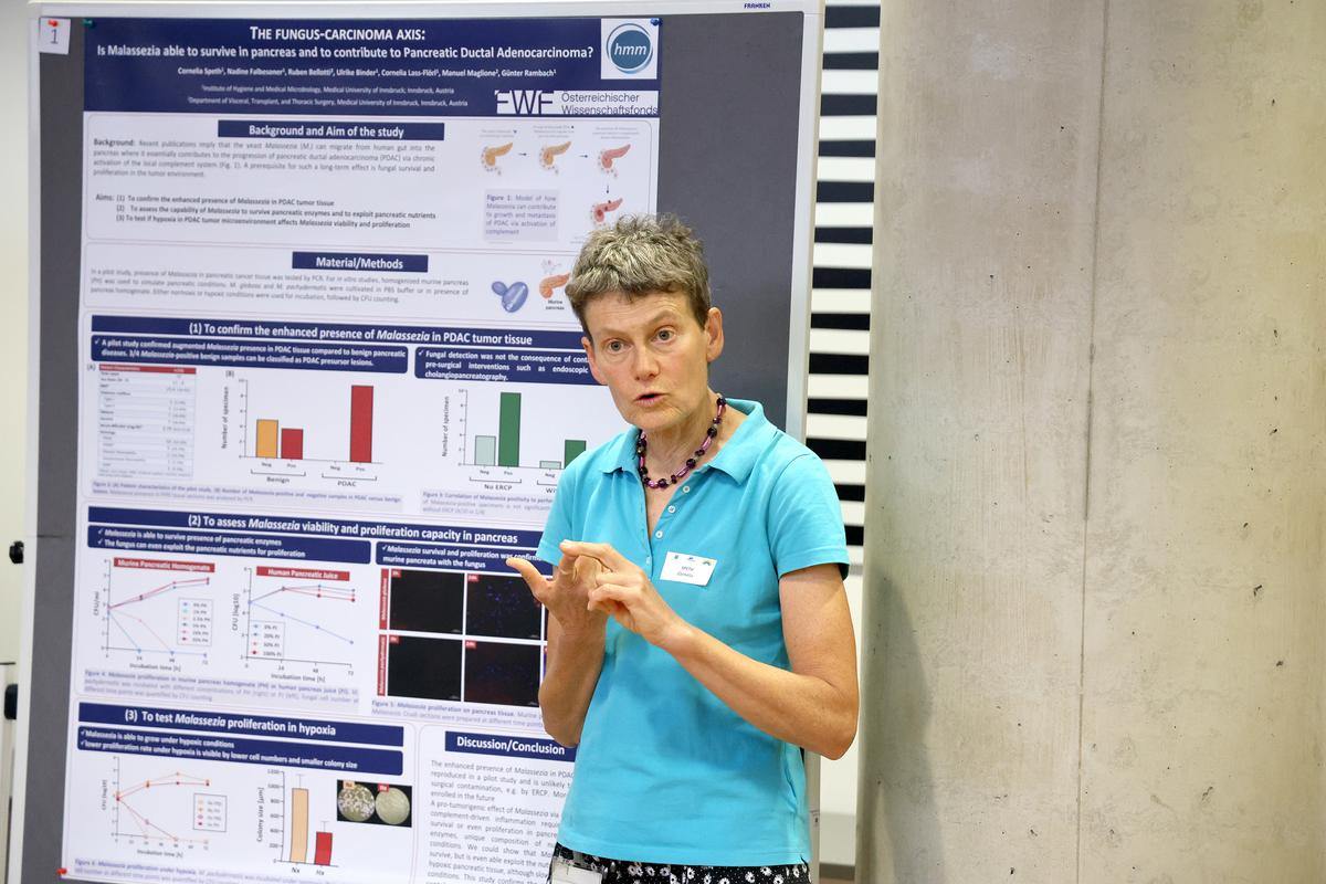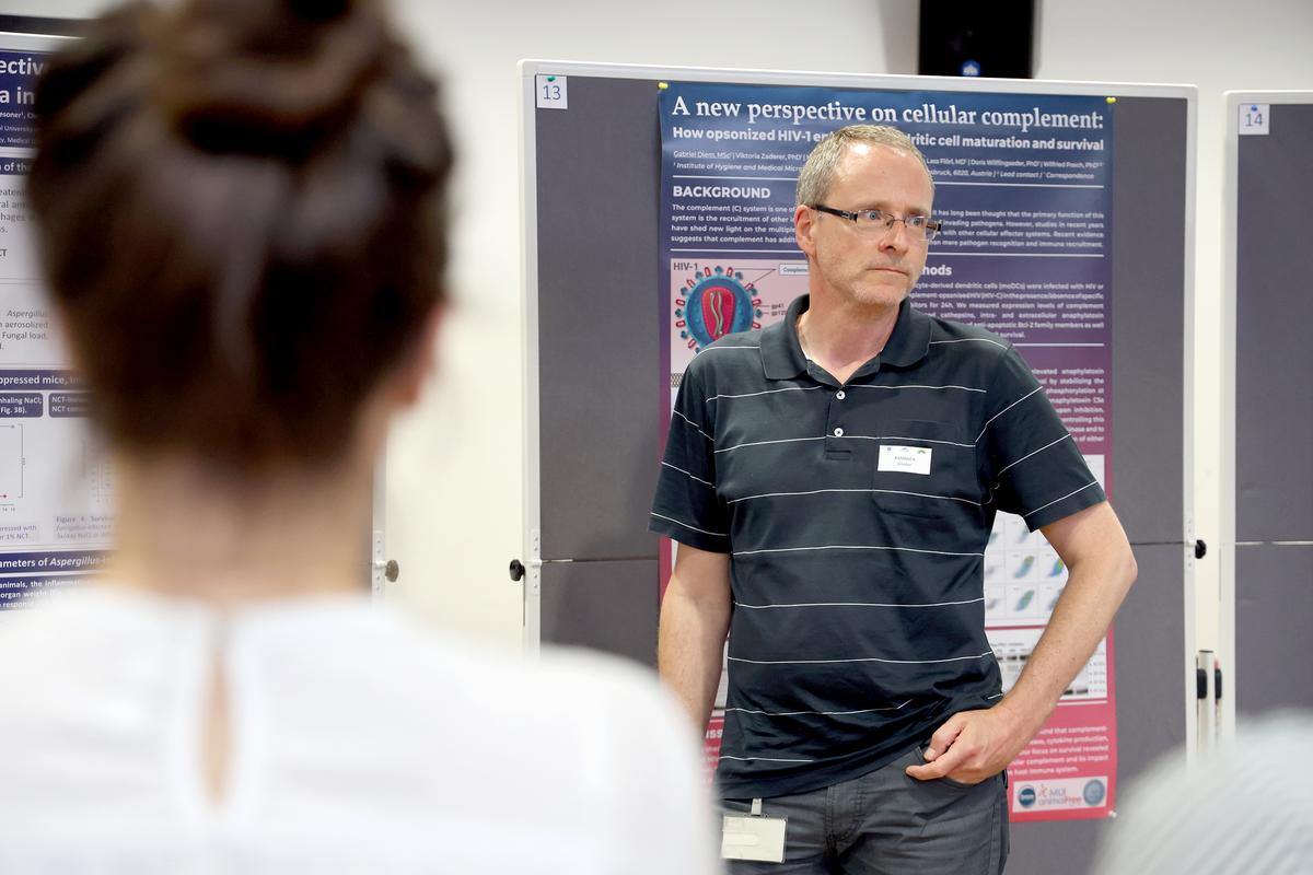 Nach dem Hauptvortrag präsentierten die Forscher:innen aus theoretischen, vorklinischen und klinischen Einrichtungen der Medizinischen Universität Innsbruck ihre Forschungsaktivtäten mittels Poster und Kurzvortrag. Die anschließenden angeregten Diskussionen spiegelten die Relevanz der Veranstaltung für den essentiellen Know-How-Transfer zwischen den Disziplinen und im Rahmen des Forschungsschwerpunktes Infektion, Immunität und Transplantation wider. „Der CIIT-Science Day bestätigt nun bereits zum 9. Mal die hohe infektiologisch-immunologische Expertise sowie auch die translationale Ausrichtung unserer Grundlagenforschung“, betont Science Day Organisator Wilfried Posch.
