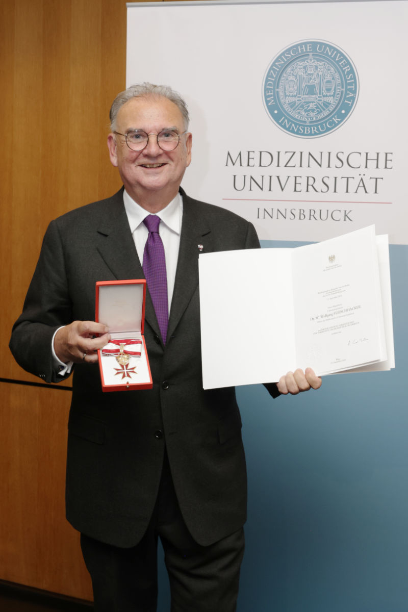 Rektor Wolfgang Fleischhacker hat eine der wichtigsten staatlichen Ehrungen erhalten, die gegenwärtig in Österreich vergeben werden. Das Große Goldene Ehrenzeichen für Verdienste um die Republik wurde ihm im Rahmen der 20-Jahresfeier der MUI überreicht. Fleischhacker erhält diese hohe Auszeichnung auf Grund seiner Erfolge als Rektor, seiner Verdienste für das Fach Psychiatrie und die Forschung auf diesem Gebiet sowie für seine Aktivitäten zur Gleichbehandlung der Geschlechter.