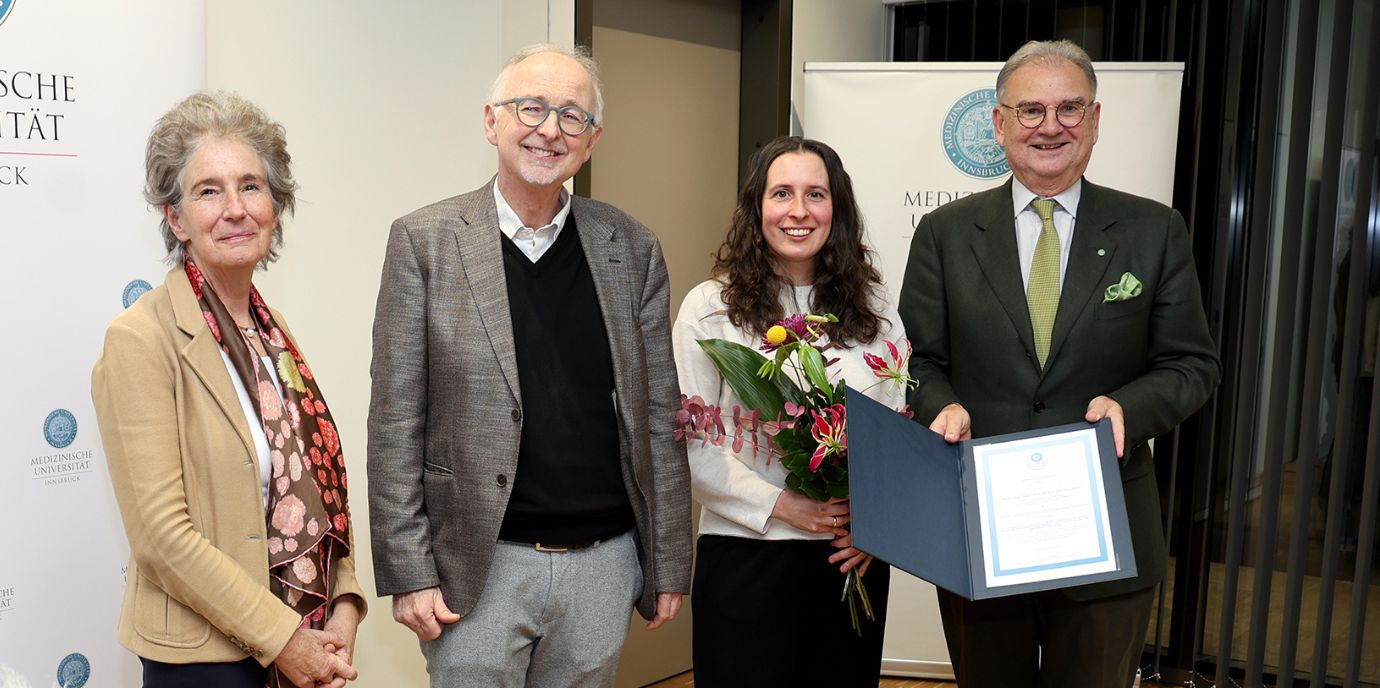 Mit dem Dr.-Otto-Seibert-Wissenschaftsförderungspreis zeichnet die Medizinische Universität Innsbruck junge Forscher:innen aus, die mit ihren wissenschaftlichen Leistungen auffallen. Aufgefallen ist die Preisträgerin für das Jahr 2024, Lisa Seekircher, auch Hanno Ulmer. „Ihre unkomplizierte Art und ihre Fähigkeiten mit Daten und Statistiken umzugehen, haben mich sehr beeindruckt“, hob der stv. Direktor des Epicenter bei seiner Laudatio auf Seekircher bei der Preisverleihung am 4. Februar 2025 hervor. Die Mathematikerin erhielt den Preis für ihre Publikation “Immune response after two doses of the BNT162b2 COVID-19 vaccine and risk of SARS-CoV-2 breakthrough infection in Tyrol, Austria: an open-label, observational phase 4 trial”, die 2023 im hochkarätigen Fachjournal The Lancet Microbe erschienen ist.